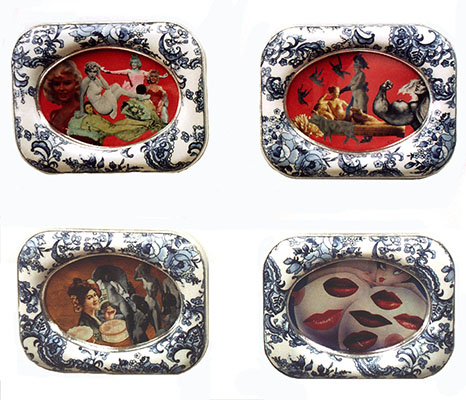 Schattige lijstjes, 4x, collage op papier, ieder 18 x 23 cm, 2004